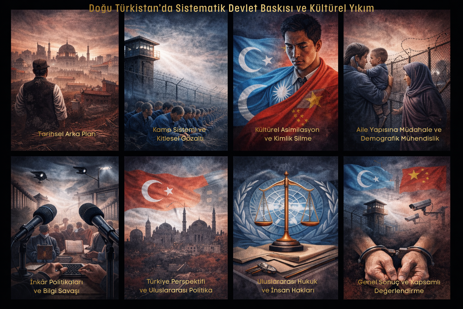Bu çalışma boyunca Doğu Türkistan’daki gelişmeler; tarihsel arka plan, kamp sistemi, kültürel asimilasyon politikaları, aile yapısına müdahale, bilgi savaşı, Türkiye perspektifi ve uluslararası hukuk çerçevesinde incelenmiştir. Ortaya çıkan tablo, Batılı araştırmacılar ve Türkiye merkezli eleştirel literatürde giderek güçlenen bir ortak değerlendirmeye işaret etmektedir: Doğu Türkistan’da yürütülen politikalar, sıradan güvenlik önlemlerinin ötesine geçen sistematik bir devlet kontrol rejimi niteliği taşımaktadır.[1]