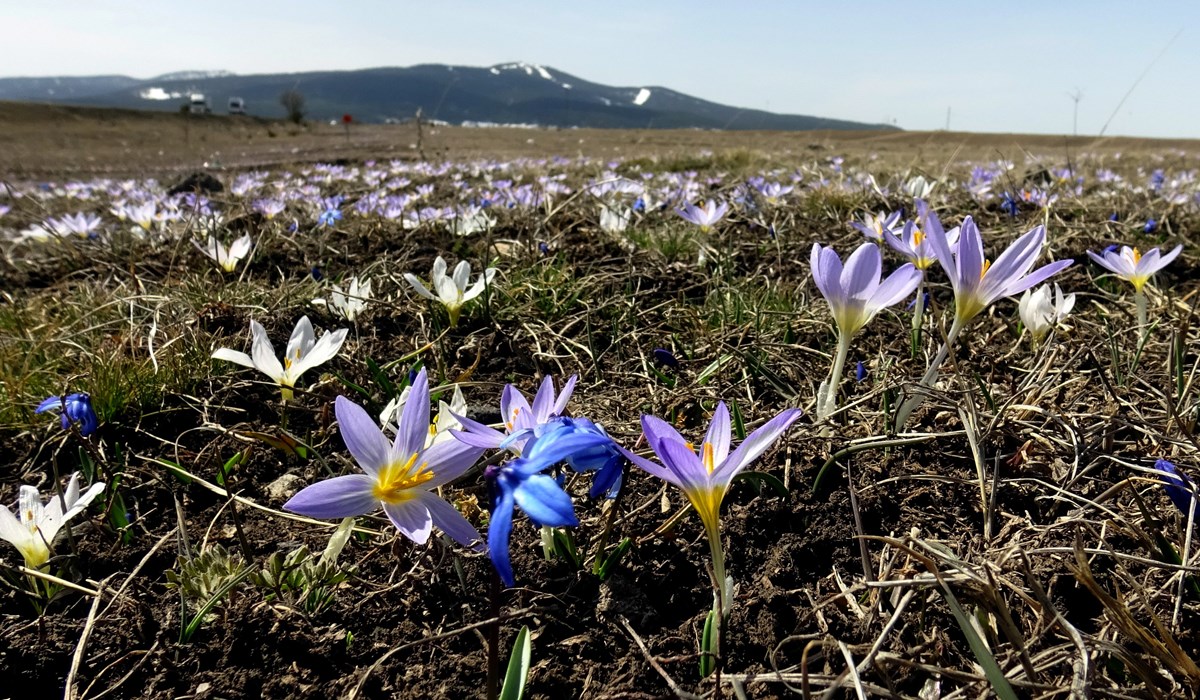 Kars’ta baharı müjdeleyen mor kardelen ve çiğdemler çiçek açtı
